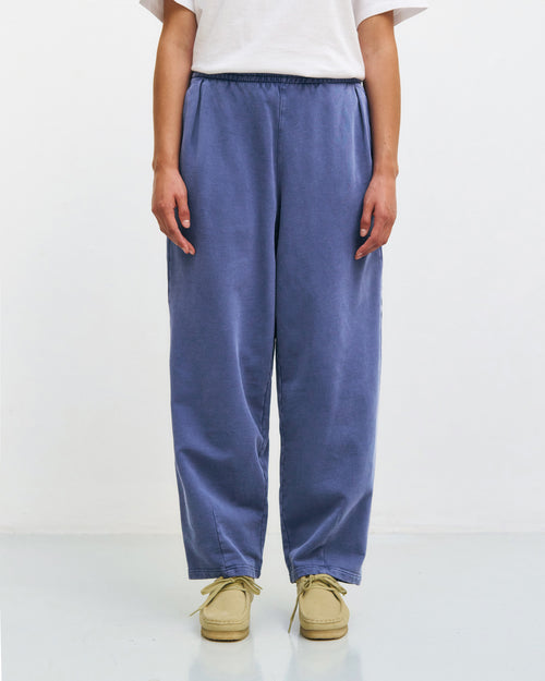 Baggy cut trousers with a particularly wide leg made from recycled post-consumer denim fabric. The elasticated waistband and internal drawstring ensure optimal comfort for everyday life. Featuring two back pockets and two side slit pockets. Handmade in Portugal.