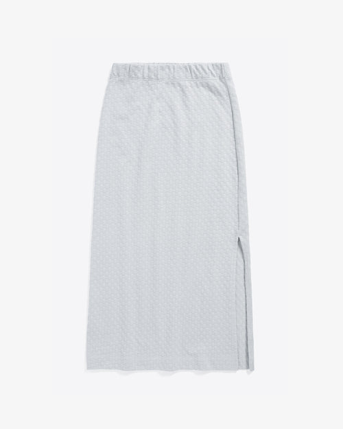 Mid-length wrap skirt with an extra-long belt for customised styling. Sewn by hand in Portugal from a high-quality striped organic fabric.