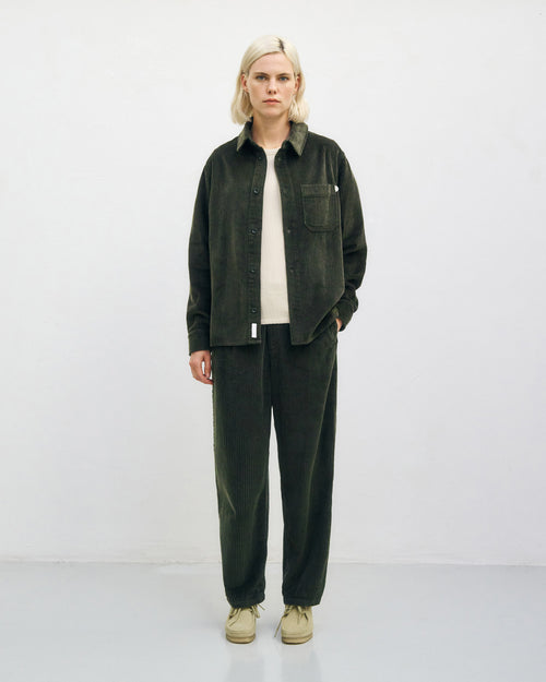Raw material: Certified organic cotton from Turkey Fabric: 100% organic cotton canvas (288 g/m²), made in Portugal Labels: made from recycled plastic Buttons: Corozo buttons, made from the nut of the tagua palm tree Production: Sewn by Mara, Carlos, Isabel, and Irene in Vila das Aves, Portugal Care: Wash at 30 degrees, gently spin inside out, air dry
